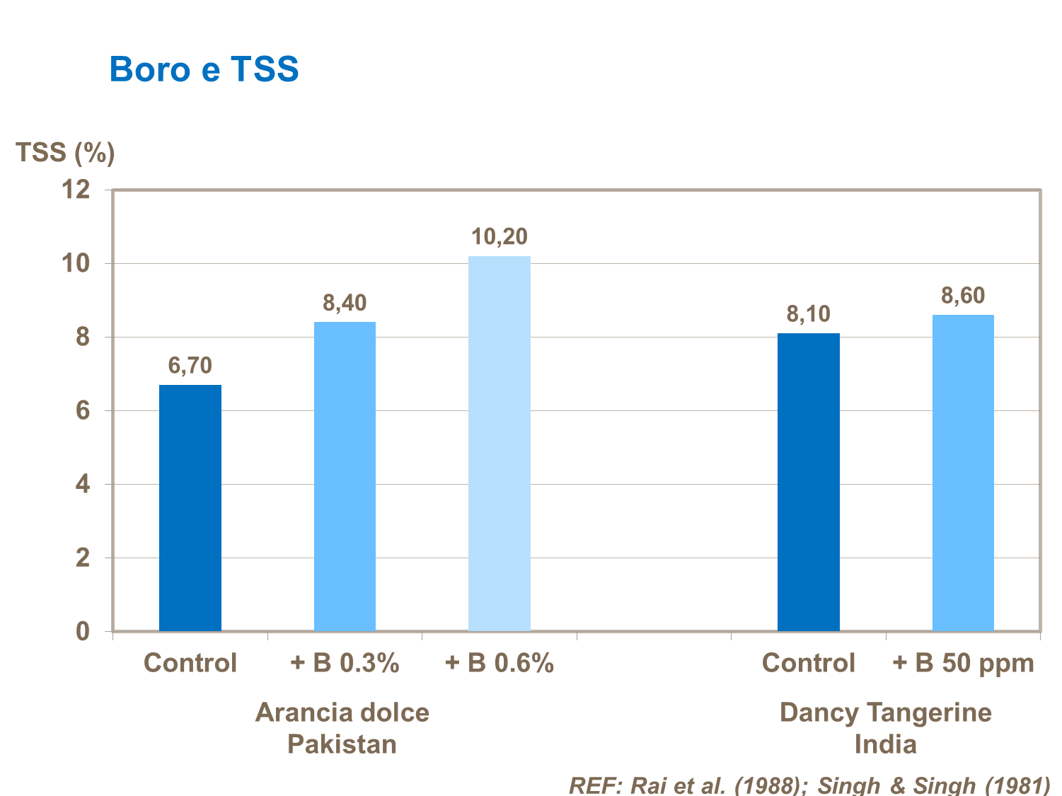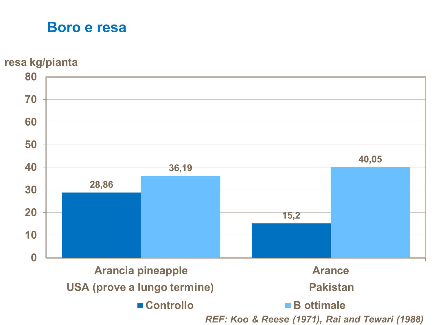 Gli agrumi sono molto sensibili al Boro, come mostrano le risposte ai trial.