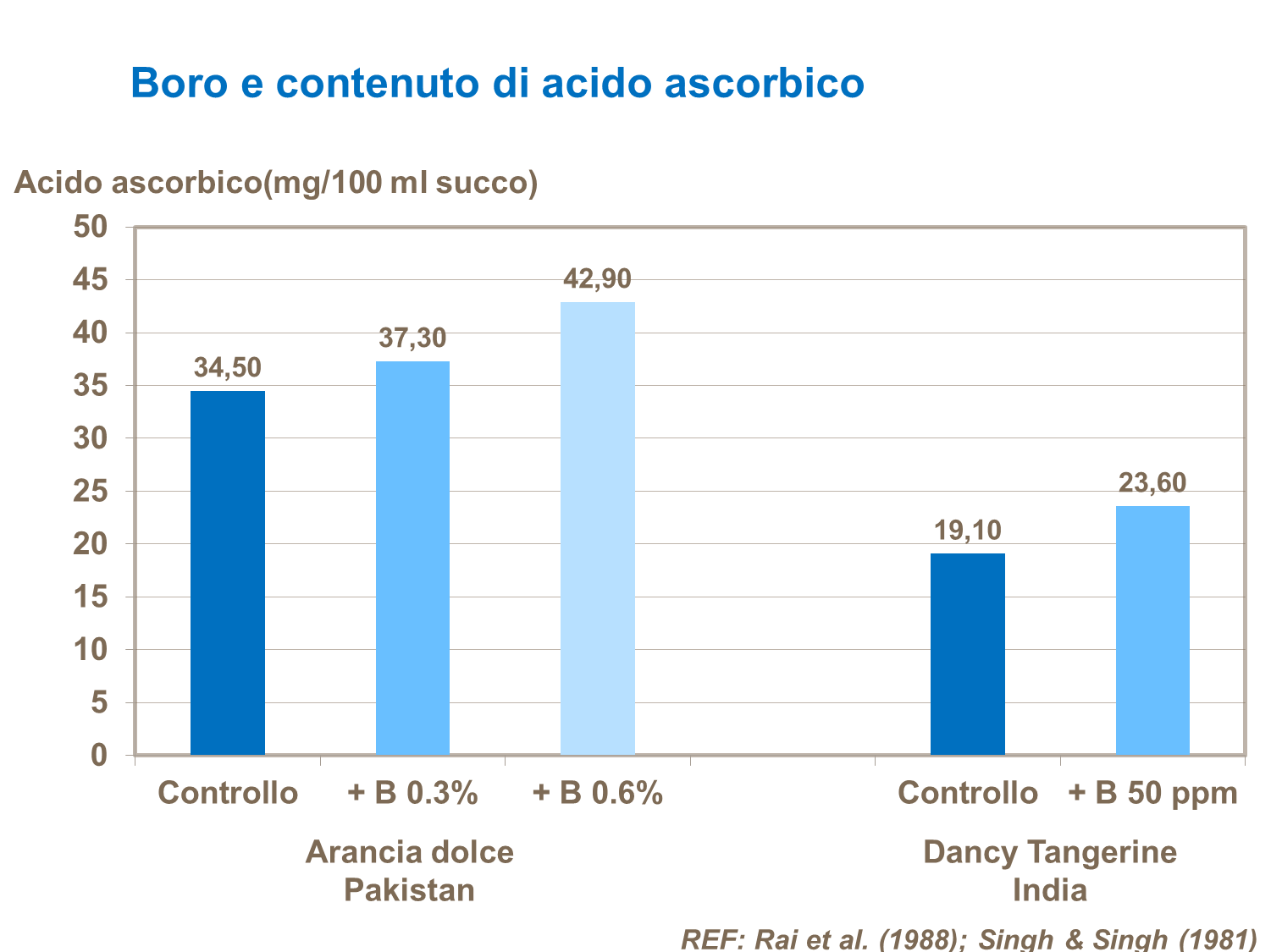 Il Boro può anche aumentare il contenuto di vitamina C nei frutti.
