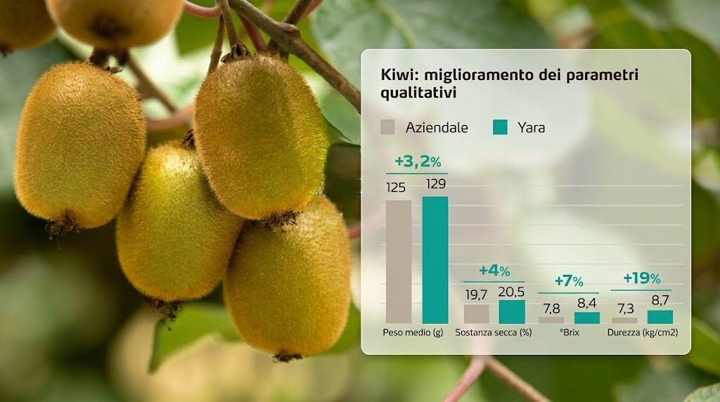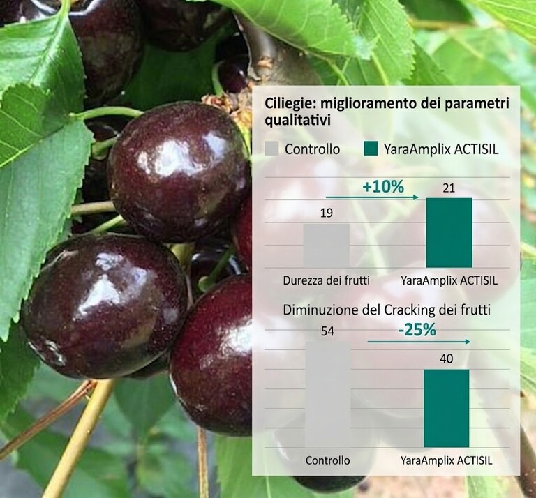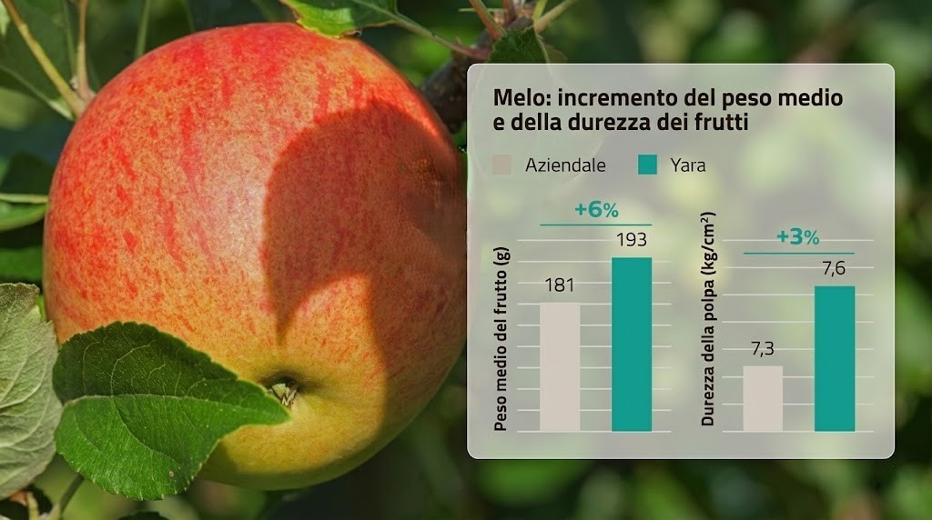 L'efficacia di YaraAmplix ACTISIL è supportata da dati concreti su diverse colture frutticole, dove il miglioramento della consistenza si traduce direttamente in un minor numero di scarti e maggiori margini.