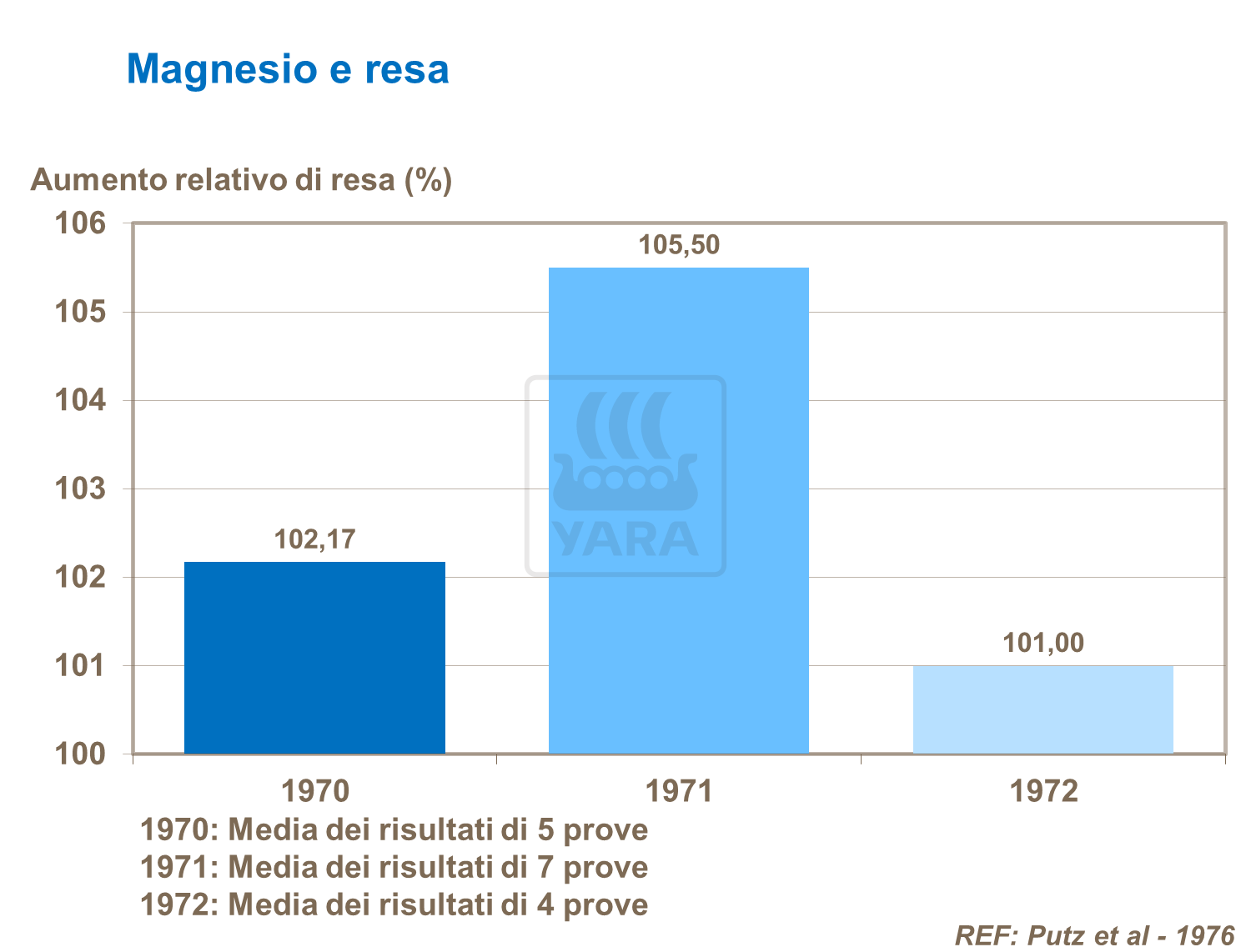 Nei terreni con una grave carenza di magnesio le rese possono diminuire di ben il 15%. In tali casi le somministrazioni regolari di magnesio su base annua hanno consentito di incrementarle dall'1 al 10% nelle sperimentazioni.