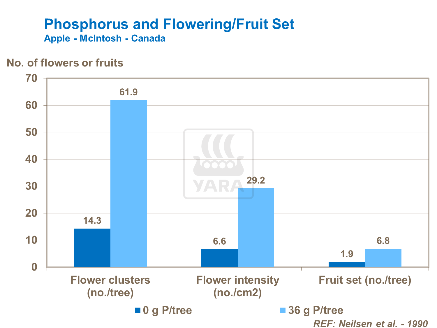 Il Fosforo incrementa il potenziale di fruttificazione aumentando il numero di infiorescenze, la loro intensità e il livello di allegagione.