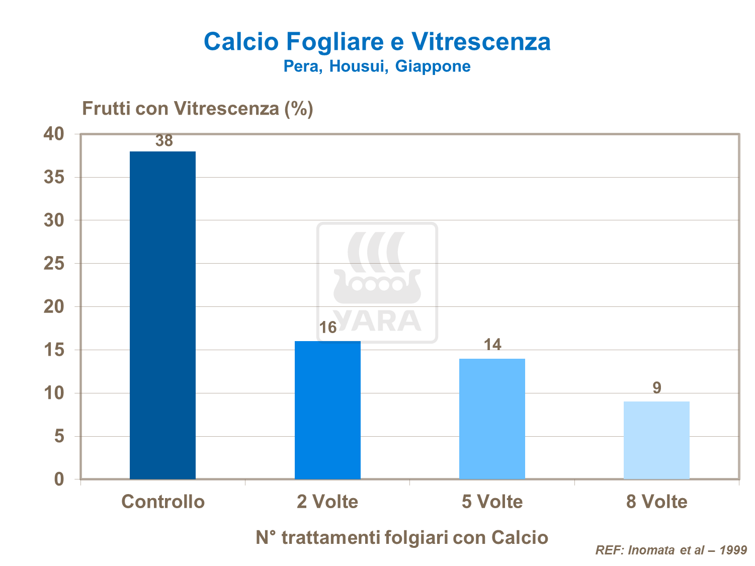 Le somministrazioni devono essere effettuate a intervalli regolari. Fino a otto somministrazioni fogliari si sono dimostrate efficaci nella riduzione della vitrescenza nelle pere giapponesi.