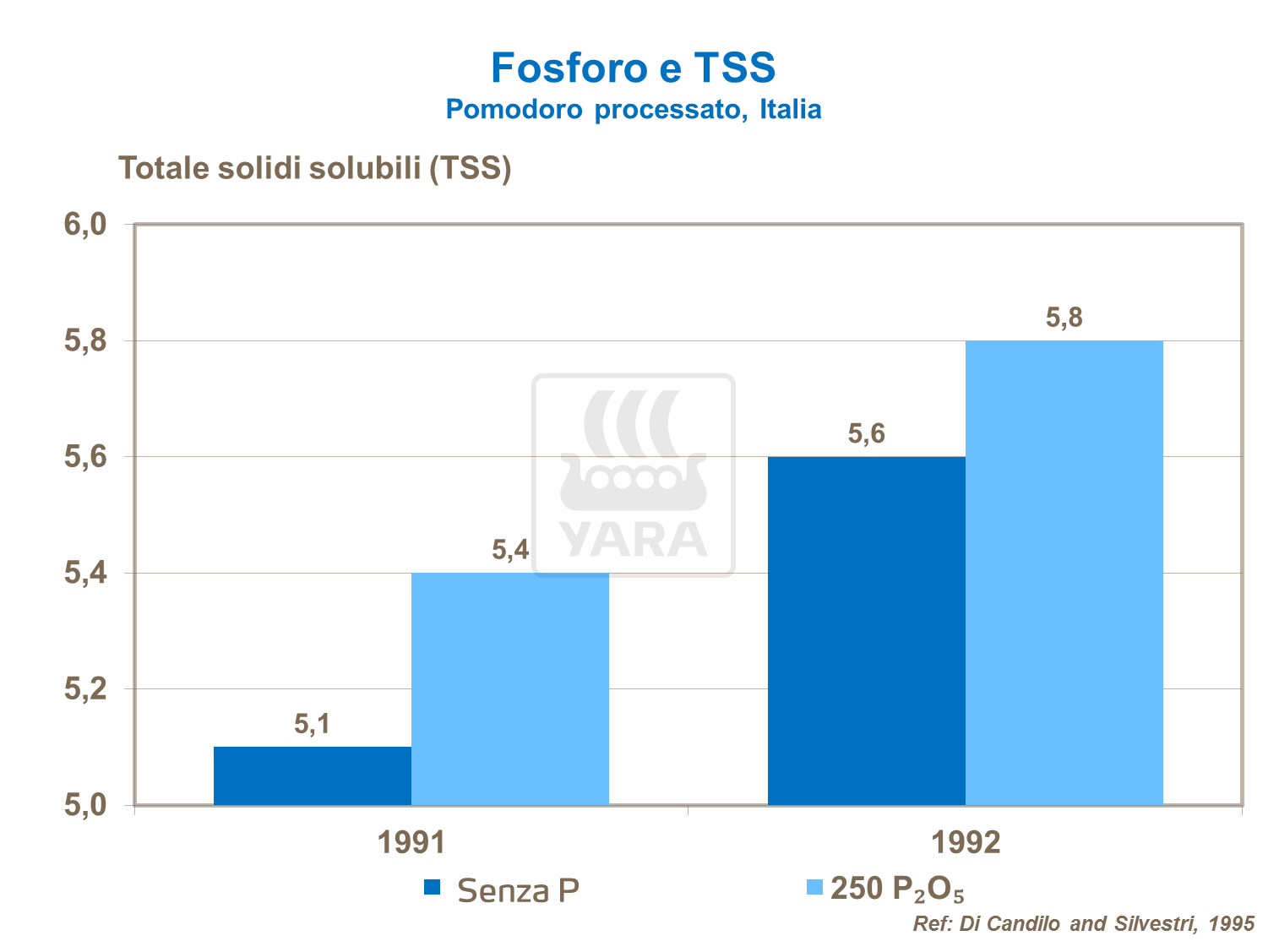 Buoni livelli di Fosforo assicurano un aumento significativo di TSS, migliorando la proprietà organolettiche e di trasformazione dei pomodori.