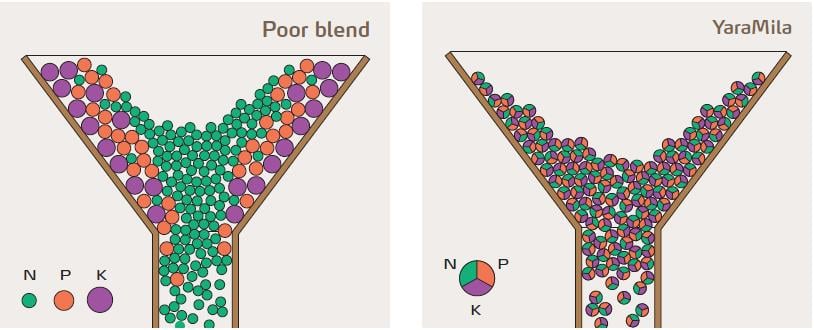 La qualità dei granuli YaraMila conferisce resistenza ai danni durante il trasporto e lo stoccaggio, oltre a permettere una distribuzione uniforme