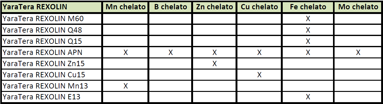 Alcuni prodotti YaraVita e YaraTera Linea REXOLIN sono infatti miscele di microelementi e microelementi chelati il cui uso è consentito.